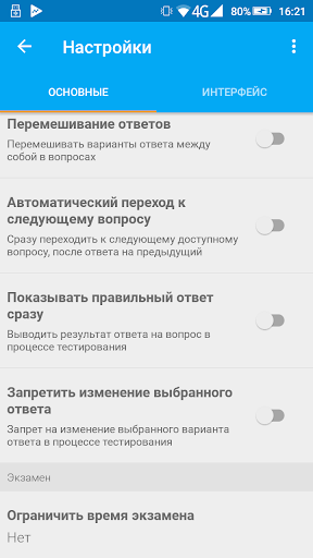 - режим "Темы", позволяет выбрать необходимый набор тем и пройти тест по ним
