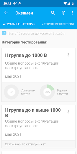 Также в приложении присутствуют вопросы для устаревших категорий.