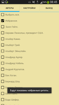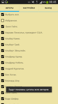 - в настройках можно выбрать высказывания отдельного автора/ов;