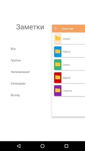 Очень простой и интуитивно понятный интерфейс блокнота, позволяет легко и быстро записывать ваши идеи, напоминания и заметки. Для удобства, все ваши записи можно организовать в различные группы, как в те которые уже есть в приложении, так и в те , которые вы можете создавать сами.