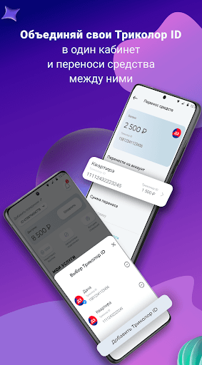— переносите средства между объединенными Триколор ID.
