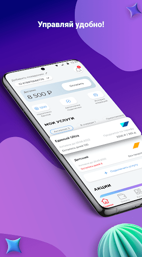 — оплачивайте услуги, просматривайте баланс и историю платежей;