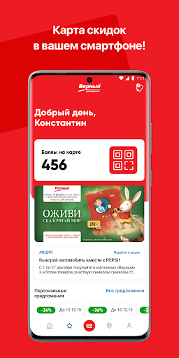 • Верный в телефоне, покажите код из приложения на кассе для начисления или списания баллов;
