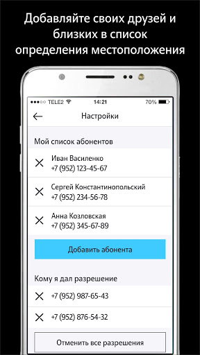 Для улучшения качества определения местоположения искомого абонента рекомендуем также установить приложение этому абоненту и включить GPS.