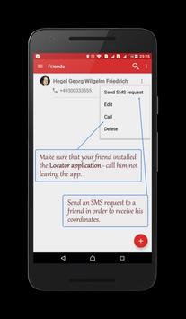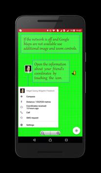Локатор работает даже в местах, где нет Интернета, и в случае недоступности Google-карт позволяет проложить маршрут в самом приложении. Гео-данные передаются через sms, никакие дополнительные приложения не потребуются.