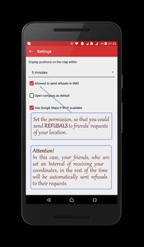 Гибкие настройки позволяют управлять приватностью данных о твоем местоположении, Локатор никогда не уведомит о твоих координатах без разрешения.