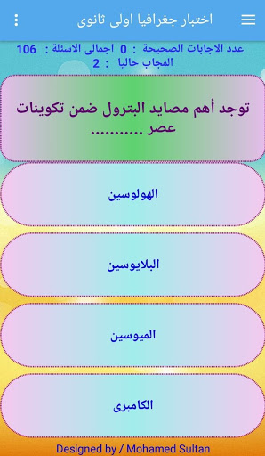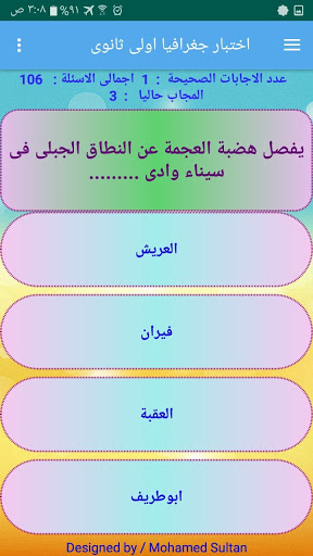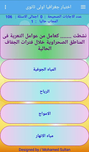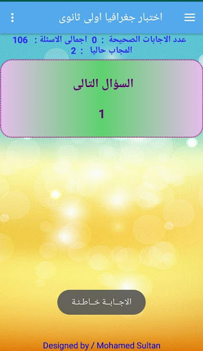 هذا التطبيق يخص طلاب الصف الاول الثانوى لتدريبهم على نظام التابلت والنظام الحديث فى مادة الجغرافيا اسئلة ذكاء واسئلة تعتمد على الفهم الطلاب واظهار النتيجة فى الحال هذا البرنامج صمم لخدمة طلاب الثانوية النظام الحديث