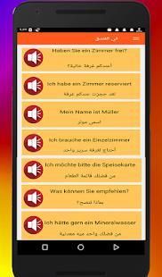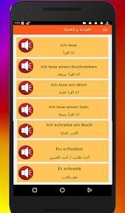 The application contains 33 lesson includes more than 1,000 words and sentence in Arabic and German languages and voice lessons in writing as follows: