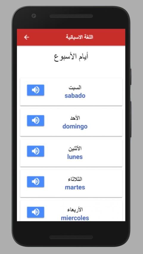 تطبيق اللغة الاسبانية يتكون من أقسام مختلفة.الأقسام من بسيطة إلى معقدة.