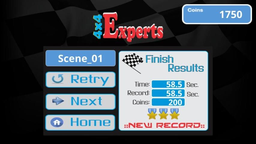 Эксперты 4x4 игра внедорожный стиль с несколькими треками, которые зарабатывает больше прибывших быстрее в конце. Каждый трек имеет оценку звезд и время, чтобы быть выполнены.