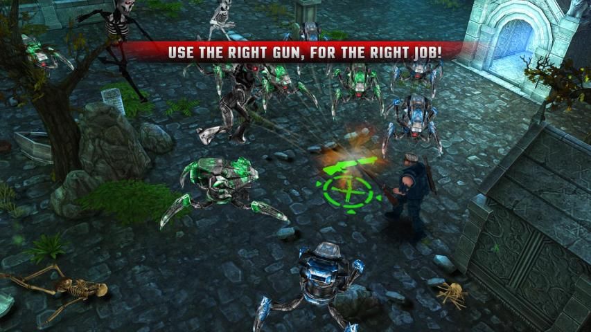 Это так называемый двойной палки действие игра, в которой вы контролируете свой характер через два (сенсорные) контроллеров; один слева и один на правой стороне сенсорного экрана. Левый джойстик управляет вашим движением и правую ручку управления, где вы прицелиться и стрелять свое оружие. Это позволяет очень гладкой опыт, в котором вы переходите в одну сторону и стрелять с другом. После того, как вы познакомились с основами, вы будете в ближайшее время стрельбы киборг солдат, как нет завтра. Вы управляете героем действий в массовое соло кампании, в которой очень важно, что вы держите глаза на входящих киборгов, пока вы искать бонусы и сильнее оружия, чтобы возглавить восстание. Бонусы и оружие можно найти по всему миссии так что научиться двигаться быстро и действовать еще быстрее. Конечная нота для продвинутого игрока: для правой / центра вы найдете