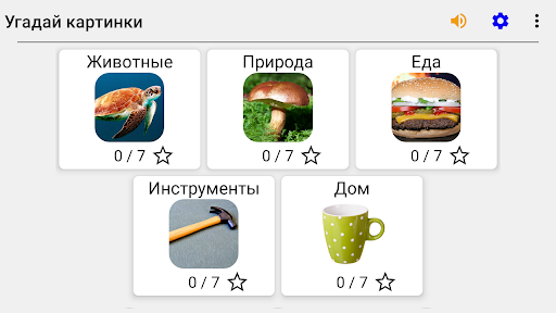 Играйте с красочными картинками и угадывайте простые слова! Веселая игра абсолютно для всех! 5 разных тем на выбор: