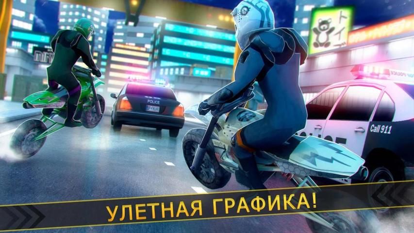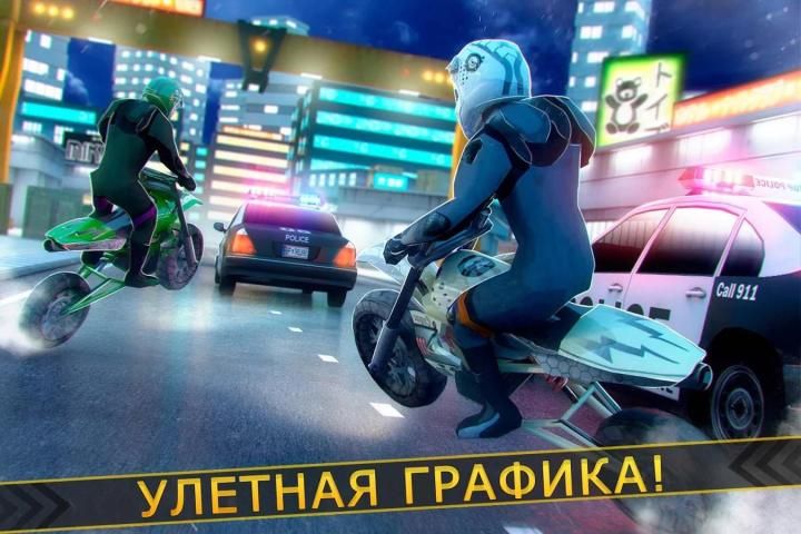 - Побег из полиции в этой гоночной игре, полной действий и мотоциклист мотоциклов!