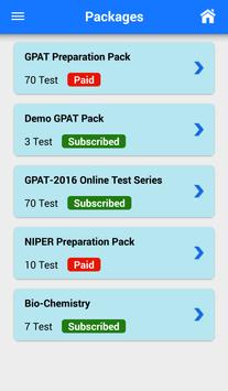 Various packages like GPAT Preparation Pack (in which we provides complete material for GPAT & gpat online mock test series, Graduate Pharmacy Aptitude Test online exam pack, NIPER JEE Test Preparation Pack, Drug Inspector Preparation Pack are available to subscribe.