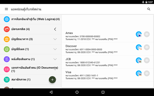 ส่วนติดต่อผู้ใช้ทั้งหมดสำหรับ App นี้ ผู้จัดการรหัสผ่าน ที่ได้รับการ ออกแบบมา สำหรับการป้อนข้อมูล ที่ง่ายและรวดเร็ว และการดึง