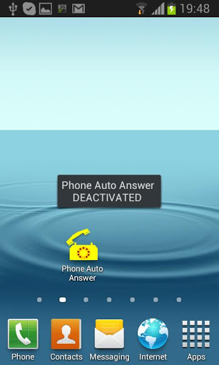 This App answers Incoming Phone Calls Automatically, and turns on the speakerphone. No hands are needed to answer Calls.Phone Auto Answer. HandsFree Mode. Particularly useful when you are- driving your car- driving your motorcycle (wearing a helmet and earphone)- taking a bath- cooking - washing, painting, etc.This app is also useful for disabled persons with mobility problemsIncoming Calls will be automatically answered after approximately 5 seconds, even if you are using another app, or if the screen is black or locked.VERY EASY to use. Only One Touch is required to Activate and Deactivate. No configuration required. A Notification is shown while the Phone Auto Answer Mode is activated.Note that when you open this App, the Phone Auto Answer (Hands-Free) Mode is immediately Activated. (Nothing more happens. No User Interface is shown.) Then you are ready to answer all incoming calls automaticallyThere are No Settings (for this Free Version)If you no longer want to answer calls automatically, just touch the launch Icon to Deactivate it.Tip: Copy/move the launch Icon to the Home Page of your Device, where it is easily found.Features:- ANSWERS INCOMING PHONE CALLS AUTOMATICALLY- SPEAKERPHONE IS TURNED ON DURING CONVERSATION- SPEAKERPHONE IS NOT TURNED ON IF YOU HAVE A HEADSET/EARPHONES PLUGGED IN- HANDSFREE MODE/OPERATION- ONLY ONE TOUCH TO ACTIVATE AND DEACTIVATE- MAKES IT POSSIBLE TO ACCEPT CALLS USING NO HANDS- OPTIONAL SILENCING OF RINGER AND/OR VIBRATOR ON INCOMING CALLS (*)- OPTION TO ONLY ANSWER CALLS FROM CERTAIN PREDETERMINED PHONE NUMBERS (*)- SELECTABLE ANSWERING DELAY (*)- OPTION TO ANSWER CALLS WITH SMS (*)- TEXT ANSWERING MACHINE. REPLY ON UNANSWERED CALLS WITH AN SMS (*)- AUTOMATIC ACTIVATION AT EARPHONE/HEADSET PLUG-IN (*)- AUTOMATIC ACTIVATION AT CONNECTION TO CHARGER OR CAR POWER ADAPTER(*)- DOES NOT CAUSE ANY NOTICEABLE ADDITIONAL BATTERY DRAIN- ONLY A FEW PERMISSIONS ARE REQUIRED(this App does NOT read your contacts - NO ADS(*) Only in Pro Version, the "Phone Auto Answer PRO" (<- Click to go there)Issues:- This App may not work on all Phones. If it does not work on your Phone, please let us know- There seems to be an issue with HTC Evo and various other HTC DevicesIf you like this app, PLEASE give it a Rating. If you have a problem, PLEASE first send an email toterboel@gmail com. Maybe we can help you. If you only give it a bad rating, we are unable to help you, as we do not know your email address