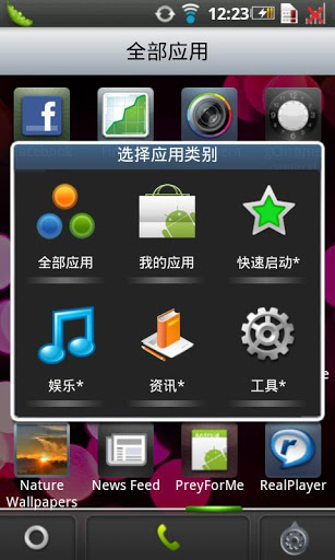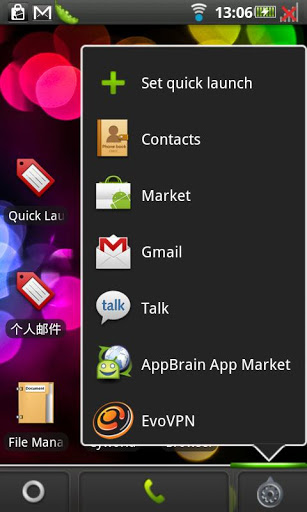 Quick Launch Hone support quick launch and customise category applicationsQuick Launch Home is one specific home for android 2.1 amp; 2.2,it enable you organize applications, and make a quick launch like Window.Special dock in bottom, make easy callEnable user make category for hisher applicationsEnable user uninstall market applications from HomeEnable user set quick launch lick Window Desktop homeEnable find available space when add widget Support live wallpaperAny suggestions are welcomeNeed your RateHelp recommend this application to your friendsSettings for Home1, quot;Enable auto add screenquot;When move last right page and this page has content also not reach max screen number, will add one new screen2,Enable landscapeWill support landscape when open this configuration3,show Set quick launchalways has quot;Set quick launchquot; in right popup UI4,Show category hintwhen open applications view, will popup one hint to switch category5, Show colorful bgShow more colorful icon background in applications view6,Show backgroundShow one background in applications view7,Move vertical switch categoryMove vertical to switch between categoryHow to fix vm crash:get system.prop file from etcadd follow linedalvik.vm.heapsize32m or dalvik.vm.heapsize48madb push system.prop etcsystem.propretart