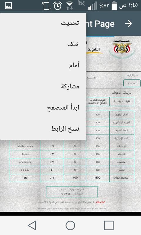 You can print the result statement grades cross-linked phone computer but is considered the result of informal Alabatmadha from the Ministry of soil office and put the ministry and the Ministry of Education of Yemen seal and success for all Wishing the college certificate and excellence of university and get Chhaid Bachelor's, master's and doctoral degrees.