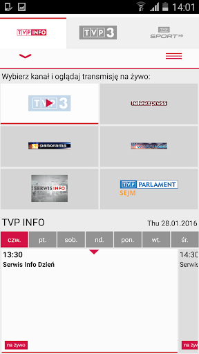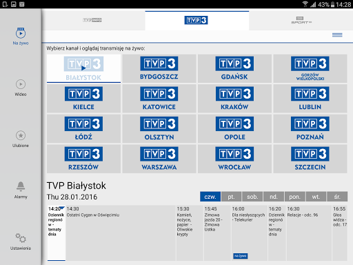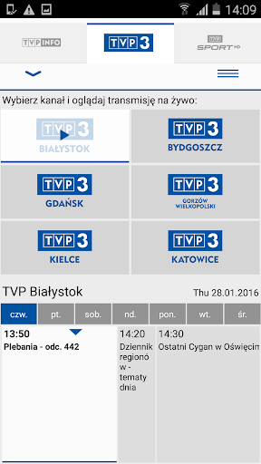 TVP Stream mobile application gives an access to the latest news from the country and the World on your Android phone or tablet. With TVP Stream there is an access to TVP Info channel, 16 regional TV stations of Telewizja Polska and TVP Parlament. Newest information about the program is easy to be checked with Electronic Program Guide EPG. Application has been updated by “Sport” tab, developed on the occasion of the Olympic Games in Sochi, which gives access to sport content of Telewizja Polska. Entire content is available by convenient and transparent way with division into Sports. According to rights, viewer has an access to “live” events and to Video on Demand. Broadcasting technology and aspect has been accepted by MKOL and Sportfive – rights owners.