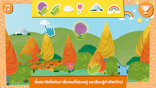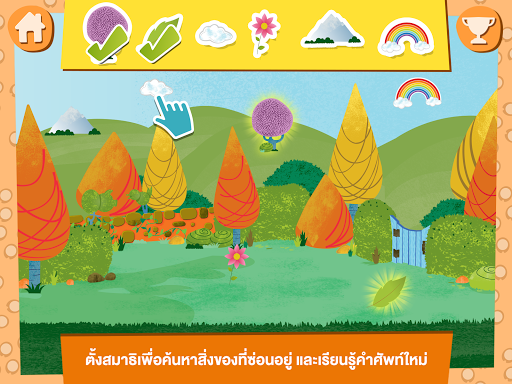 ค้นพบศัพท์ภาษาอังกฤษถึง 60 คำ ตั้งแต่ตัวเลข, สีสัน, รูปทรง, อาหาร, สัตว์โลก, สิ่งของในห้องเรียนและของเล่นต่างๆ เพื่อสร้างคลังคำศัพท์