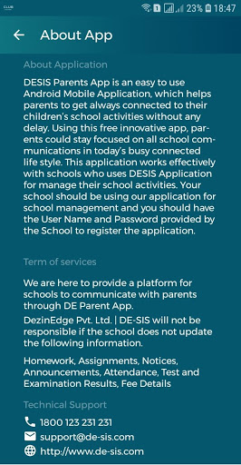 DESIS Parents App is an easy to use Android Mobile Application, which helps parents to get always connected to their children’s school activities without any delay. Using this free innovative app, parents could stay focused on all school communications in today’s busy connected life style. This application works effectively with schools who uses DESIS Application for manage their school activities. Your school should be using our application for school management and you should have the User Name and Password provided by the School to register the application.