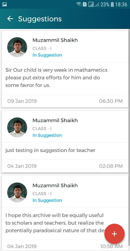 -- Parent can send suggestions to the teacher.
