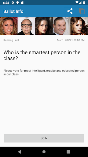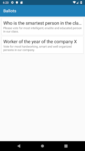 แอพนี้ช่วยให้คนกลุ่มเล็ก ๆ เลือกผู้นำของพวกเขาโดยไม่ได้รับการเสนอชื่อคุณสามารถลงคะแนนให้คนจำนวนมากที่คุณต้องการและระบบการลงคะแนนจะคำนวณผู้นำ