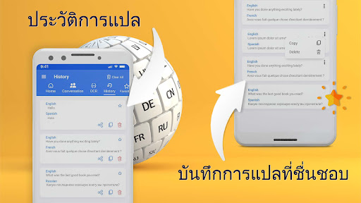 การแปลข้อความทุกภาษา คุณสามารถเขียนคำหรือประโยคได้ง่ายๆ แล้วกดปุ่มแปล แอพแปลภาษาทั้งหมดแปลงคำหรือประโยคของคุณเป็นภาษาอื่นที่คุณต้องการ