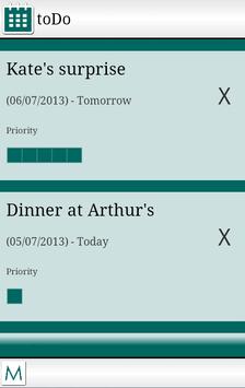 Never has it been so easy to schedule your activities! Stop using calendars that interrupt your productivity and disrupt your flow, and start scheduling your activities with toDo. You can make a list of all your activities, ranked based on your priorities, and toDo will be persistent in keeping you to your goals! You never would have guessed how many hours in a day are left for living your life when your goals are kept in check!