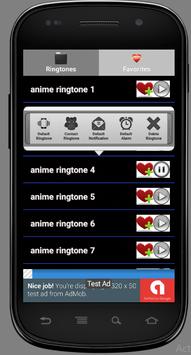 After you install Anime Ringtones , open this app, and choose the title until the Menu appear or you can tap " play button " to listen the tone before you set .