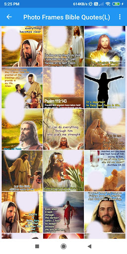 Ang mga frame ng larawan ng Bibliya ay nagbibigay ng mobile application sa ibaba ng isang listahan ng mga tampok na pinahahalagahan na pinakabagong nilalaman:-