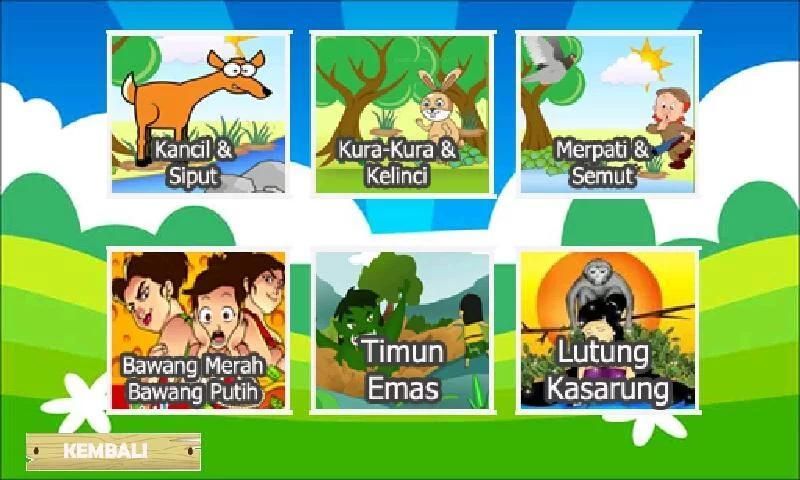 a collection of fairy tales with drawings and Indonesia in the form of a puzzle game that can make children more interested in reading fairy tales, there are some fairy tales such as onions and garlic, Kasarung