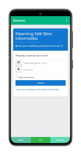 Ang EXAMBRO ay isang ilaw at simple at simpleng pagsusuri sa Android -based (browser) upang gawing mas madali para sa mga mag -aaral na sundin ang isang pagsubok na batay sa computer (pagsubok -based test o pagsubok).Nilagyan ng mga tampok ng proteksyon upang mabawasan upang ang mga mag -aaral o mga kalahok sa pagsusulit ay hindi gumawa ng pandaraya.
