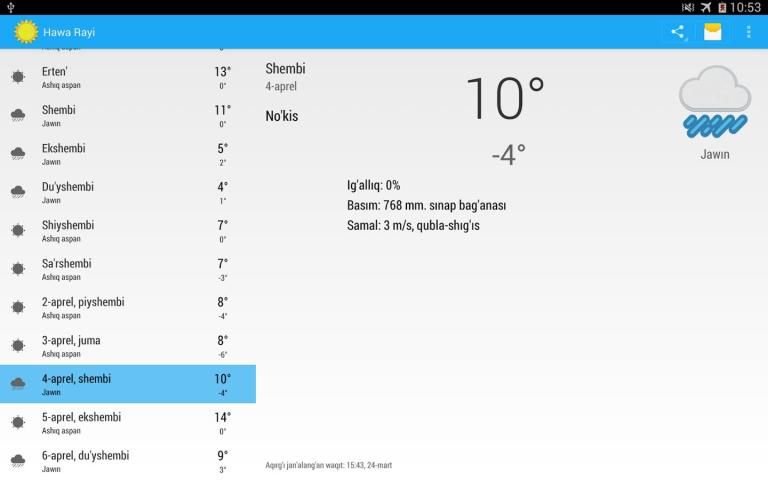 - Күнлик ҳаӯа райы мағлыӯматларын басқалар менен бөлисиӯ