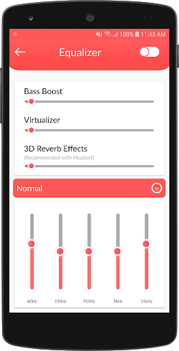 5. Equalizer with powerful bass and virtualizer with reverb and custom settings with 5-bands.