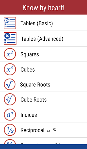 Helps you memorize useful, must-do maths stuff such as multiplication tables, squares, cubes, square roots etc.