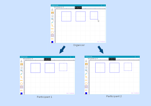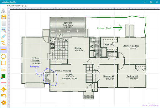 Mediabyte Whiteboard is an object based real-time whiteboard communication tool. It's the perfect tool for communicating with remote workers, clients, or students. Draw on the board and have it show up on other Mediabyte Whiteboard users in real time. The app makes you feel that you are in the same room as your teammates. Add a drawing such as a house plan, software diagrams, electrical drawing and draw over them. Pass the pen to your joined users to let them convey their ideas. Great for sharing software ideas, architectural drawings, business ideas, sports plays, you name it! Connect with Mediabyte Whiteboard user on other platforms. Perfect companion with voice/video solutions.