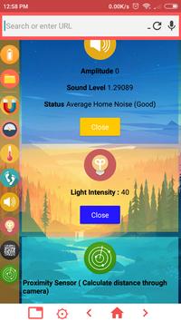 This app is a internet web browser which do not stores your history or data. It is also a QR/Bar code scanner , Accelerometer , Pedometer , Lux meter , Battery Manager , DiskSpace Smart Info , Magnetometer , Device thermometer , Sound Meter , Proximity Sensor , Proxy , Translator , FlashLight , Voice Recorder , Video and Image capturing , Wallpaper manager , Secure Payment and social tabs
