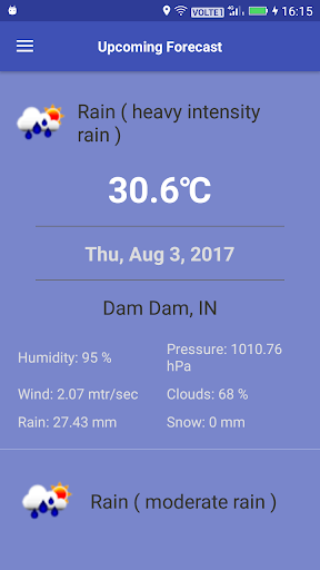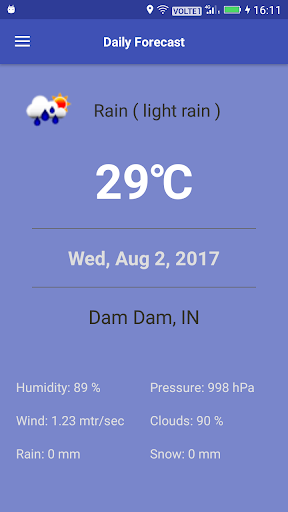 1. Ipinapakita ng app na ito ang kasalukuyang panahon gamit ang lokasyon ng GPS ng gumagamit.