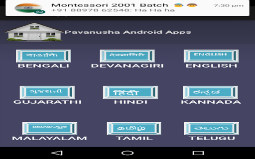 In this app we can learn Telugu, Tamil, Kannada, Malayalam, Bengali,Gujarati , Hindi and Devanagari languages