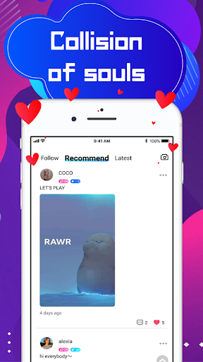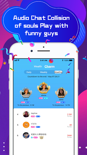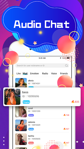 Makipag-chat sa mga taong tulad ng pag-iisip, gumawa ng mga kaibigan, pakikipag-ugnayan ng boses, at pag-usapan ang iba't ibang mga paksa. Mayroong maraming mga mode ng paggawa ng mga kaibigan, laro, pagkanta, atbp para sa iyo upang i-play sa kuwarto.