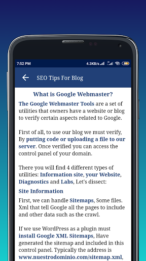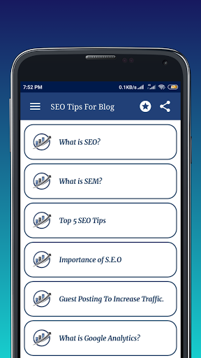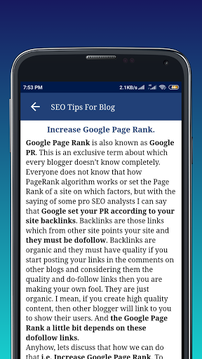 Ang Seo (Search Engine Optimization) ay mahalaga para sa atin.Kung ikaw ay isang blogger o kung nais mong magsimulang mag-blog. Kailangan mong malaman ang SEO.Dahil kung alam mo ang seo makakakuha ka ng mas maraming kita mula sa iyong blog.Kung gumagamit ka ng seo sa iyong blog pagkatapos ang ranggo ng iyong blog. At makakakuha ka ng mas maraming mga bisita araw-araw.Ang mga bisita ay lumalaki ang iyong pang-araw-araw na kita.Kaya kung nais mong malaman kung ano ang seo.At kung ano ang mahalaga maaari mong i-download ang app na ito. Sa App na iyong nakukuha: