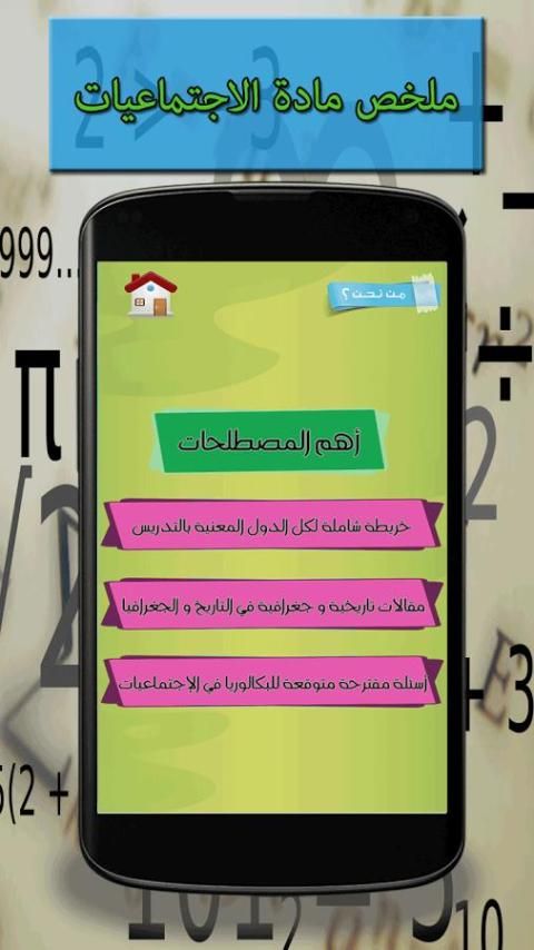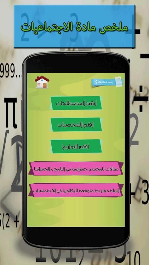 Summaries of history and geography, the application of Algerian contains summaries of the lessons of history and geography of all the people etiquette and philosophy of technical athlete conduct economy science experimental mathematics and foreign languages, in addition to all history terms and geography of all the people baccalaureate in 2018, in addition to the dates of history to all the people baccalaureate in 2018, and lesson on how to accomplish an article in the subject of social studies for the baccalaureate 2018.