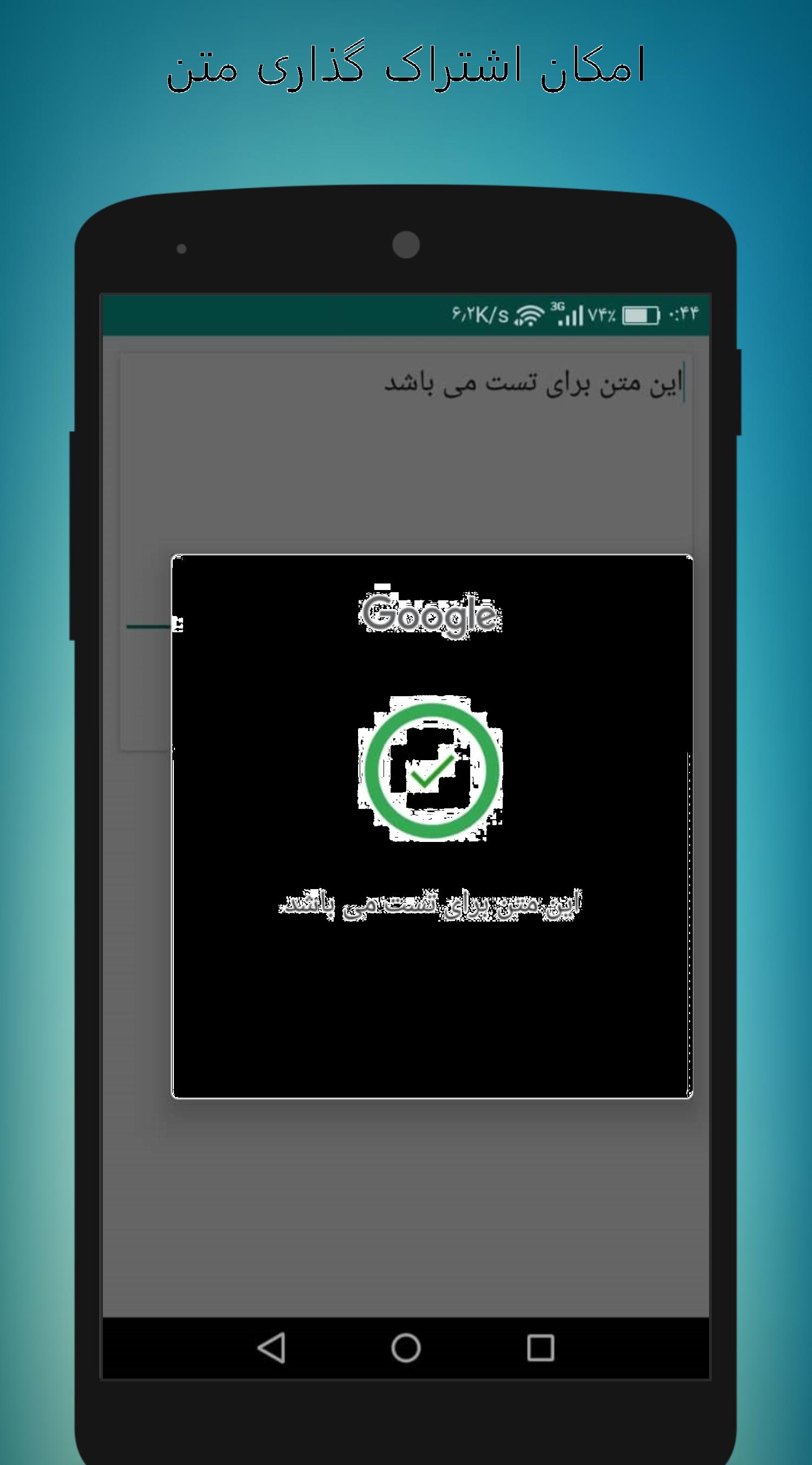 ✓ امکان اشتراک گذاری صحبت های تبدیل شده به متن در پیام رسان های مختلف نظیر واتساپ، تلگرام و ...