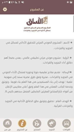 Ang isang pandaigdigang proyektong visual audio ay nangangahulugan ng kontrol ng pinakamahalagang mineral sa Tajweed at pagbabasa, sa pamamagitan ng pagbibigay ng mga visual na pang-edukasyon na modelo, ayon sa mga modernong paraan batay sa pang-agham na pamamaraan; Mula sa mga bibig ng mga senior sheikh, mga mambabasa sa mundo ng Muslim, at tumawag para sa kanilang suporta para sa Propeta (p). Br>