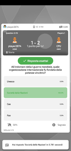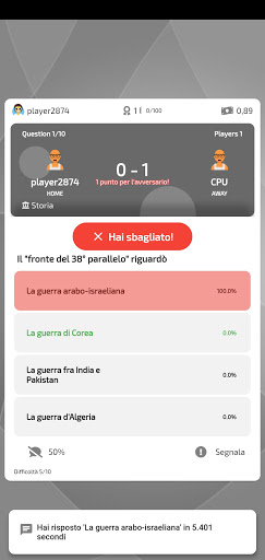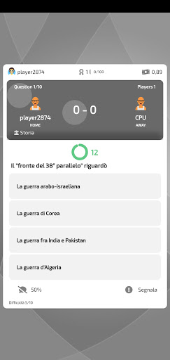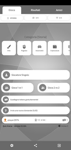 Ang Quiz Arena ay isang laro ng pagsusulit.Maaari mong i-play nag-iisa, laban sa isang kalaban at 2 laban sa 2.