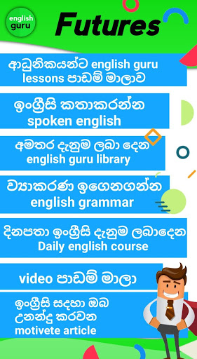 English guru is the best Android app to learn English in sinala . Learn English in Sinhala .Make your knowledge