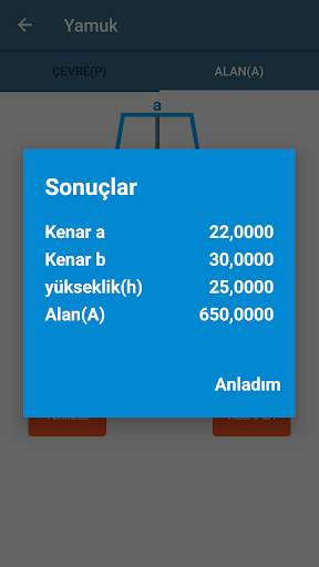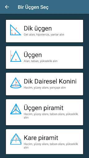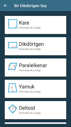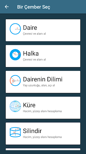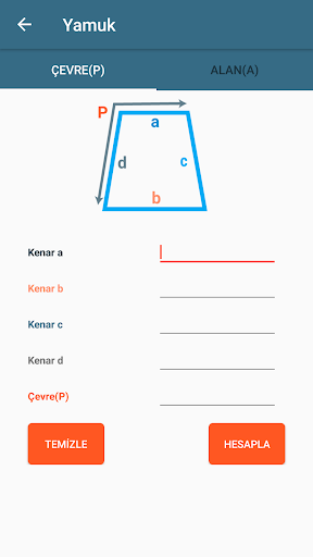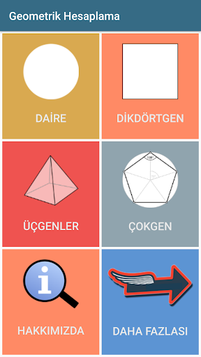 Üçgen, Dikdörtgen, dairesel şekillerin alan , uzunluk ve hacimlerini hesaplayabilirsiniz.