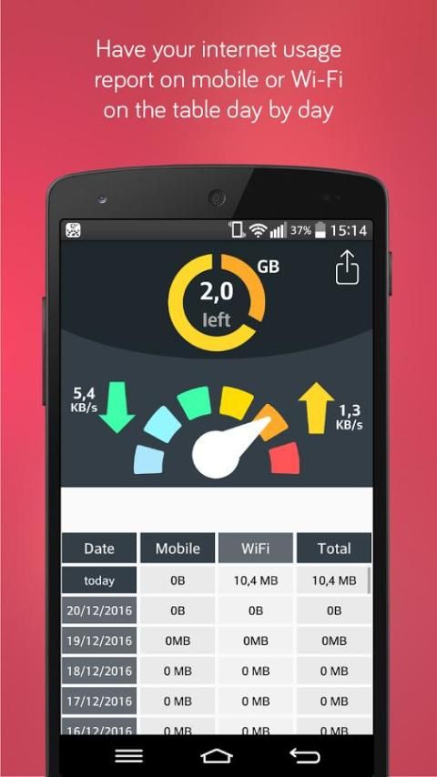 Have you ever read one of those reviews about a app? 20,000+ users downloaded Internet Speed & Data Usage latest version on 9Apps for free every week! It is simply to learn how to use it. This hot app was released on 2016-12-28. Download in official websites like 9apps and you'll never miss it!