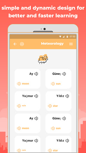 Türkçe, Türkçe Dil Eğitim Programını seyahat ederken kullanarak kolayca ve pratik olarak öğreneceksiniz.zaman.Bu nedenle, Türk Dili Öğretim Uygulaması, geziniz sırasında binlerce yararlı Türkçe kelime ve cümle koleksiyonunu topladı, böylece Türk dilini çok zaman harcamadan öğrenebilirsiniz.Türk dilindeki deyimler ve kelimeler, çeviri ve telaffuz ile birlikte.Uygulamadaki cümleler ve kelimeler aslında günlük iletişimde en çok kullanılan Türk dil cümleleridir ve bu cümleleri ve terimleri öğrenerek Türk dilinin öğrenilmesinin büyük bir yüzdesinden geçeceksiniz.